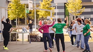 Seit 2022 kooperiert das ISK Hannover mit dem Landessportbund Niedersachsen e.V. und wird damit als erste Sprachschule in Niedersachsen durch das Bundesprogramm "Integration durch Sport" mit Mitteln des Bundesministeriums des Innern gefördert. Ziel des Projektes ist es, die Teilnehmenden der Integrationskurse beim Einstieg in die Sportvereine der Region Hannover zu unterstützen und das Gesundheitsbewusstsein zu fördern. Dazu gehören regelmäßige Bewegungseinheiten während der Deutschkurse, aber auch die Beteiligung einer Ansprechperson im ISK, die Teilnehmende bei der Suche nach einem geeigneten Sportangebot aktiv unterstützt. Außerdem organisieren wir jährlich das große ISK-Sportfest, bei dem Sportvereine aus der Region Hannover ihr Angebot vorstellen und Teilnehmenden die Möglichkeit geben, unterschiedliche Sportarten auszuprobieren.