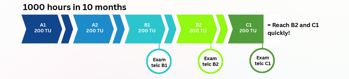 A examination or preparatory course for an examination at the C1 level can be taken after the successful completion of the C1 “Oberstufe” (advanced) course in German.